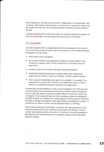 Following is the Commonwealth Ombudsman complaint handling procedures.